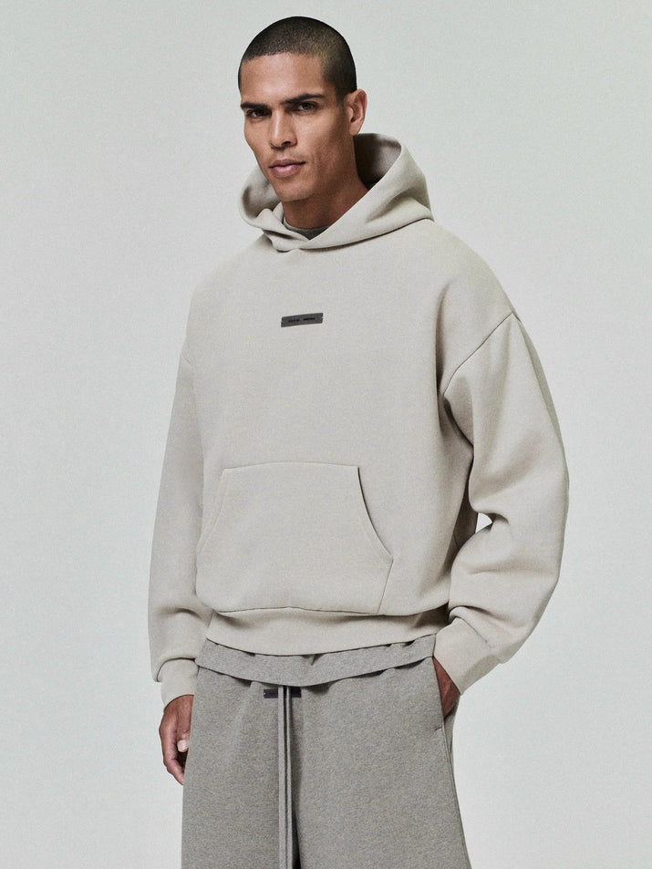 Answer 1: The sweatshirt is made of premium cotton fabric, featuring a 420G heavyweight fleece lining that provides exceptional warmth and comfort, making it perfect for autumn and winter wear.