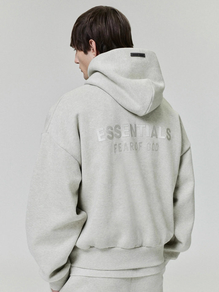 Answer 3: The sweatshirt is available in sizes S, M, L, and XL, and comes in three color options: Heather Gray, Oatmeal Gray, and Wood Brown, allowing for a variety of styling choices.