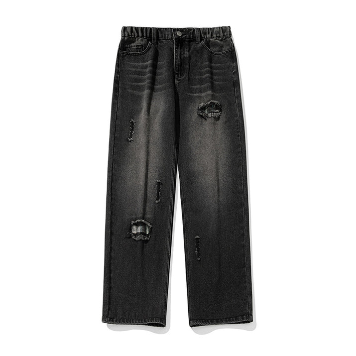 Step into style with these edgy jeans featuring a unique distressed design and chic plaid stitching, perfect for those who value both comfort and fashion.